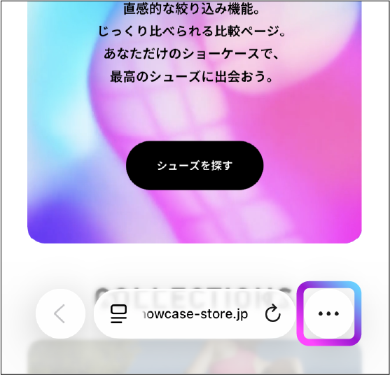 ※iPhone標準ブラウザ「Safari」をご利用ください。画面下の「…」ボタンをタップします。